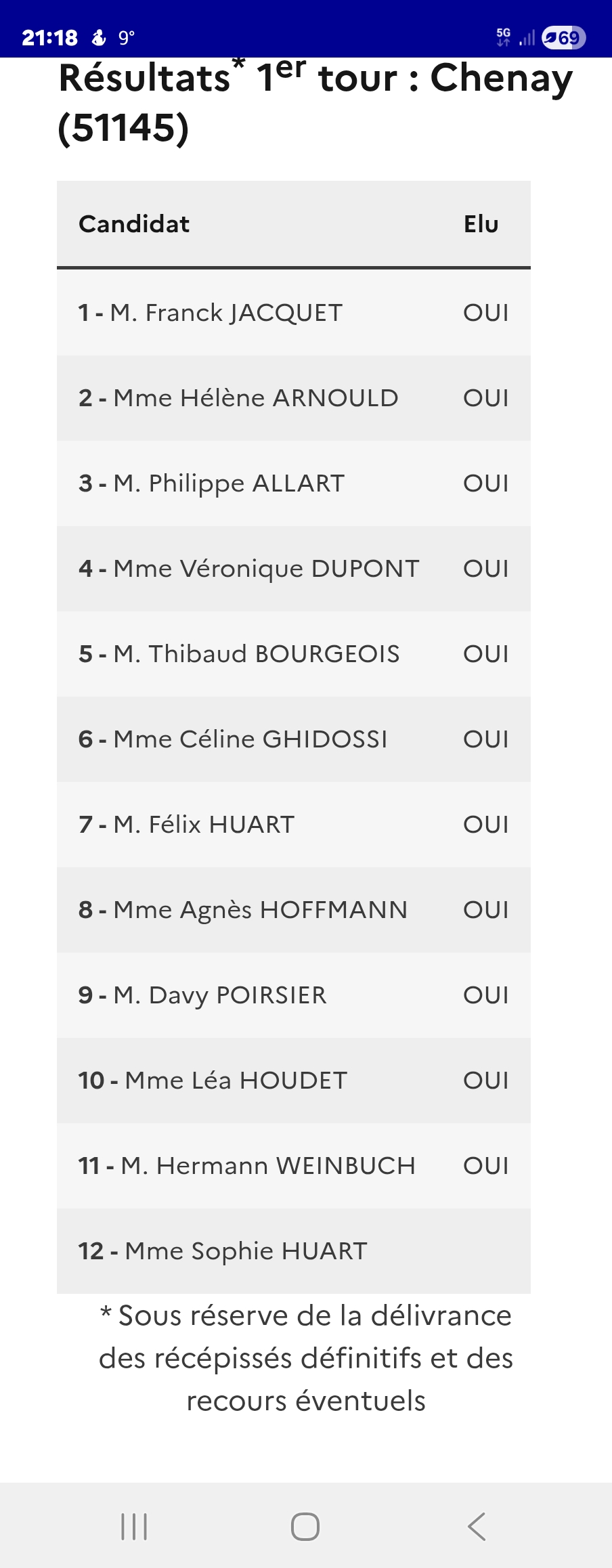 RÉSULTAT DES ÉLECTIONS MUNICIPALES À CHENAY