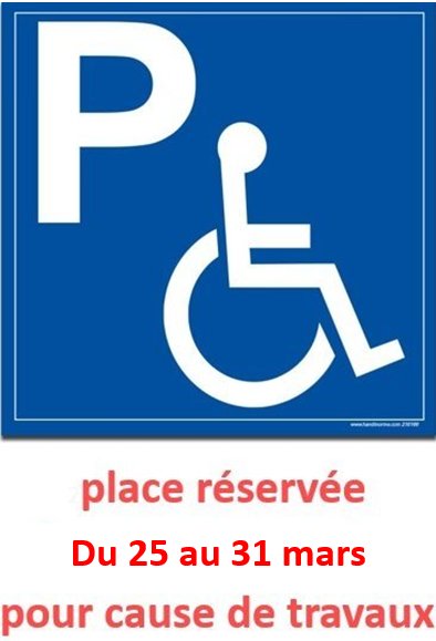 le stationnement sera réservé à cette entreprise sur la place handicapée, située place de la Source Ferrugineuse,